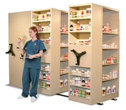 Reconfigure adjustable shelves as needed to accept new stock, meds, or patient charts.