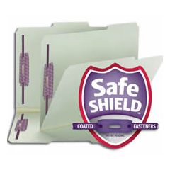 Protect your documents and fingers with Smead's patent pending SafeSHIELD® Coated Fastener Technology--the ultimate solution to fastener issues, including papers tears, finger cuts and excessive fastener crinkling. Heavy-duty classification folders make ideal project files, perfect for personnel, real estate, accounting or banking files. Sturdy Tyvek® gusset expands to hold 2" of material. 60% recycled content, 30% post-consumer material for gray/green & red.