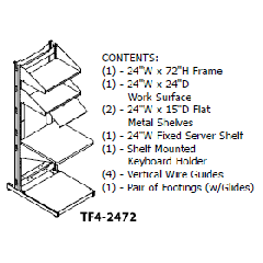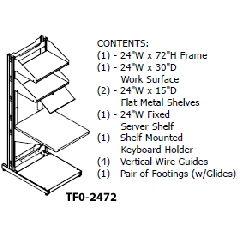 4) Standard Components - All preconfigured units include work surfaces, shelves and server shelf.