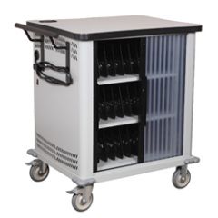 Mobile Computer Station features durable construction from heavy duty steel makes this a very reliable, portable computer workstation. The large compartment on the left can house any size CPU tower, the pull out shelf is great for storing a printer or other peripheral, the drawer below can be used to store handouts or paperwork and the pull out keyboard tray conveniently houses your keyboard. Heavy duty casters help to easily maneuver the cart over carpet, tiled floors, and doorways. Close the translucent tambour doors and lock them with a padlock (NOT INCLUDED) to secure the contents of the cart when not in use.
