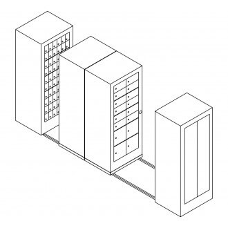 - Center Movable Cabinets: Contain 32 Mailboxes 10-3/4"W x 5-1/2"H and 8 mailboxes 10-3/4"W x 11-1/2"H Overall Dimensions 30"W x 48"D x 74"H