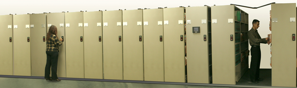 With Electric/Powered systems, additional safety features are in place to protect users and content while in use. Anyone considering an electrical system should look very closely at safety and only consider systems which have full aisle coverage at ground level. Infrared eyes will be in place throughout the aisle and does not allow the system to move if any of those eyes becomes blocked by any object.