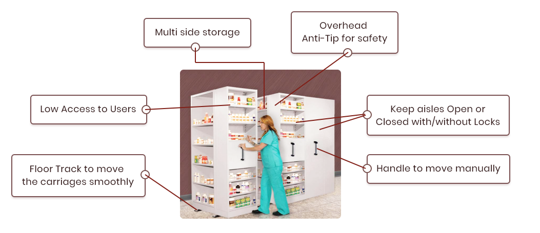 An economical, dependable system for any type of storage. Carriages up to 8' in length. These systems are ideal solutions for filing environments where high capacity, low access, and secure storage are required.