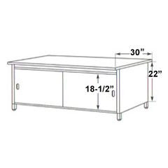 STA style tables provide storage. STA Series Sorting Tables adjust in height from 28" to 36" in 1"inch increments.