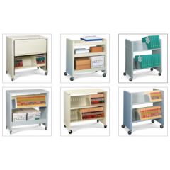Mobile File Cart is designed for easy transportation of file folders, file boxes, documents and books within healthcare offices, commercial settings, school and libraries. Mobile File Cart easily transfer, store and deliver mail, binders, books and office supplies. Options such as adjustable shelves accommodate a variety of storage sizes. Choose from over eight standard colors and options including adjustable dividers, letter or legal sized media shelves, laminate tops and more for ultra customization and functionality.