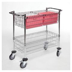 2 Shelves Mobile Wire Shelf Hand Carts. Mobile cart include two one-piece handles, twp wire shelves, Logic Clips, four donut bumpers, and two pair of swivel casters. Casters have a 300 lb. load capacity. Standard colors: Pearl Grey, and Arctic White and Black. Assembly required.