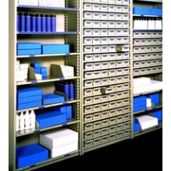 All units are constructed of medium-gauge rolled steel and come standard with full-height backs to provide extra strength. End panels are bolted together either side-by-side or back-to-back for added sturdiness. The slide-in shelf and one-piece base and bottom shelf make assembly simple. And to give the units a clean, sleek look, we've designed solid piece decorative end panels that cover the uprights. All shelving is painted with a tough, long lasting, epoxy powder finish to ensure years of rugged use.