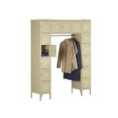 Each opening size 12" wide x 12" high x 18" deep. Available with or without legs. Louvers for ventilation. Available assembled or unassembled. Coat rod included (coat rod to be attached in field). Optional built-in locks.