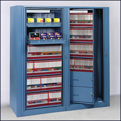 Spinfile is available in a variety of configurations to meet your particular filing needs. Units can be configured to accommodate standard color-coded folder filing, secure storage in locking drawers, small media filing in three inch drawers, filing in full-shelf rollouts, unit boxes and even wardrobe storage capability.
